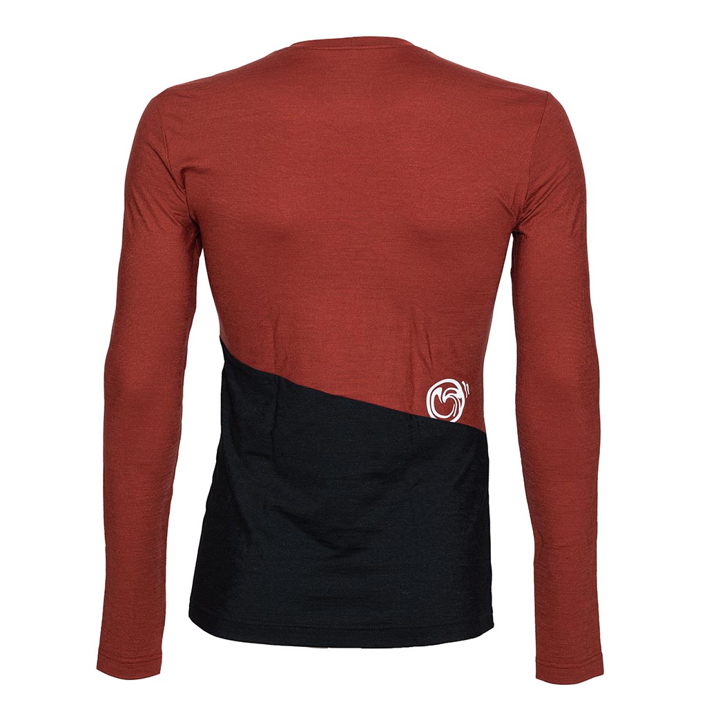 Der Stoff des langärmigen Merino Shirt Herren besteht aus 87% Merinowolle und 13% Polyamid. Der Anteil an recycelter Kunstfaser macht das Merino Shirt Herren langlebiger und hält es formbeständig.