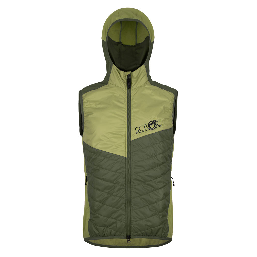 Schutz gegen Wind: leichte ärmellose Hybrid Weste mit Kapuze